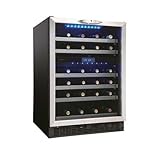 Danby Silhouette 24In Stainless Steel Wine Chiller Built-In Wine/Beverage Cooler - DWC518BLSDanby DWC518BLS 24" Built-in Dual Zone Wine Cellar with 51-Bottle Capacity, Stainless Steel Trimmed Roller Glide Shelves, Safety Lock, Cool Blue LED Lighting and Digital Thermostat