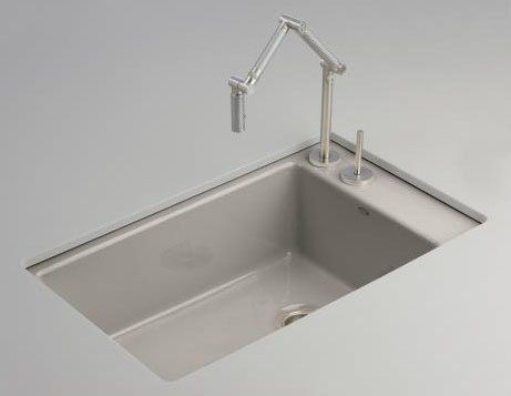 #Finish/Color:Cashmere, Faucet Hole Spacing:2 Hole for Karbon Faucet The Indio single basin sink offers a clean, modern look to complement any decor. The beveled edge provides a crisp aesthetic, while the unique side faucet deck allows for easy basin access and offers a space to place kitchen accessories. Included in the purchase price are a stainless steel bottom basin rack and a wood cutting board that fits over the top of the sink. Constructed of durable KOHLER Cast Iron, this sink is available in a wide variety of colors and features a two-hole faucet drilling. Basin Depth 9' Undercounter installation Single-hole or Two-hole faucet drilling KOHLER Cast Iron material Durable - Guaranteed* not to chip, crack or burn Nothing is Easier to Clean**- Features a smooth, non-porous enamel surface. Environmentally Friendly - 93% recycled & reclaimed material * KOHLER Cast Iron kitchen sinks installed in North America carry a Lifetime Limited Warranty for as long as the original consumer purchaser owns his or her home. For complete warra