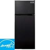 | ✚✚✚ Summit FF1112BL Summit FF1112BL 10.3 Cu. Ft. Capacity Refrigerator / Freezer - Black. FF1112BL. Top Freezer Refrigerators. Energy Star qualified and sized to perfection, our FF1112BL makes the ideal addition to any household kitchen. Made in North America, this jet black two-door refrigerator-freezer brings true convenience into the home. Frost-free operation saves both you and your appliance energy while still keeping food preserved under ideal conditions. Customize your storage layout with adjustable shelves and a large bottom crisper. Door racks are included in both sections. The deluxe interior has a huge capacity of over 10 cubic feet. At just 24 inch wide and under 60 inch high, the FF1112BL is perfectly sized for any location. It fits well in apartments and houses that have full storage needs but limited room for bulky appliances. For this model in a white exterior, see the FF1112W. Dimensions: (58. 38 inches H, 23. 63 inches W, 26 inches D).
