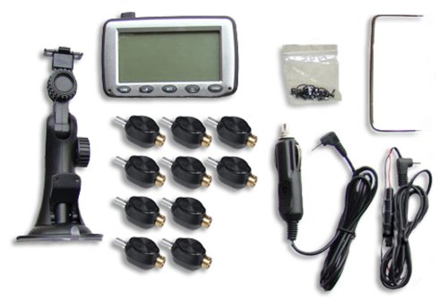 FeaturesMonitor Features? Reliable and easy to install, Large LCD screen. Built-in rechargeable lithium battery? Automatic backlight. ? Monitors up to 22 tires maximum.? Configurable high/low pressure and tempature warnings. ? Long range between sensors and monitor (MAX. 200Meters)? Visible and audible alerts. ? Selectable pressure units. EEZTire Tire Pressure Monitoring System - 10 Flow-Through Sensors (TPMS)?